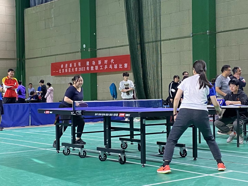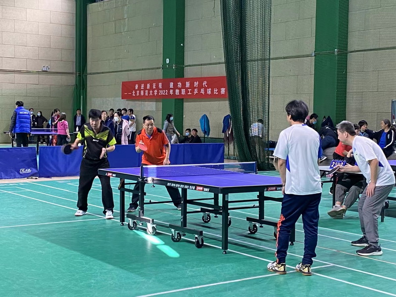 为喜庆二十大,同贺百廿校庆,丰富教职工的校园文化生活,10月21日,“奋进新征程,建功新时代”北京师范大学2022年教职工乒乓球比赛在邱季端体育馆举办。我院派出程晓堂老师、刘永厚老师、高苗苗老师、孔京京老师、孙建钢老师和董莹老师代表bet365亚洲官网 参赛。