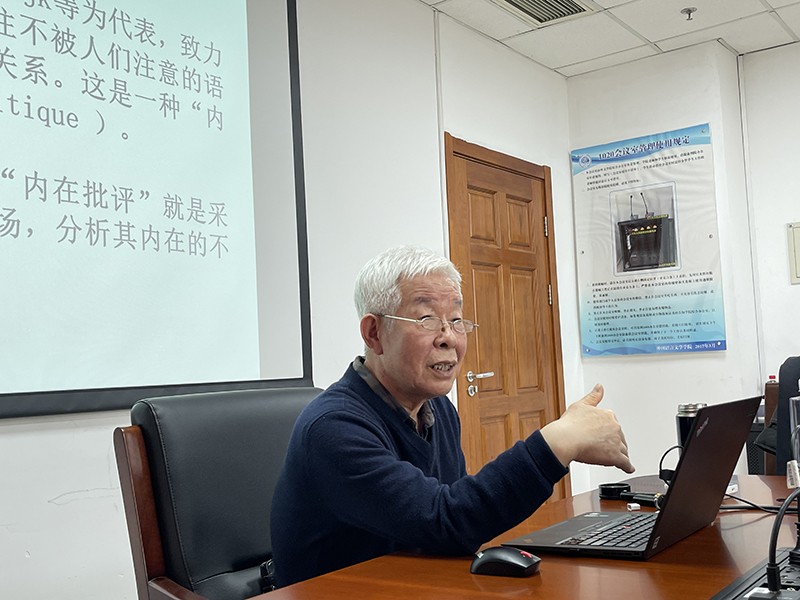 本次讲座讨论了对批评话语研究的进展与前沿。辛斌教授重点介绍了马克思主义与批评话语研究的关系、批评话语研究的伦理发展、批评话语研究的发展这三个方面的内容。辛斌教授强调,现阶段的批评话语研究应意识到,物质性的结构与符号性的文化是相辅相成的。辛教授具体描述了三种批评话语研究的伦理观:主体间性的话语伦理;内在批评的话语伦理;程序伦理。辛教授总结了批评话语研究当下学者普遍接受的观点:研究者需要掌握丰富的语言知识与理论知识。辛斌教授的精彩讲座与谆谆教导让参会的青年老师与同学们受益匪浅。