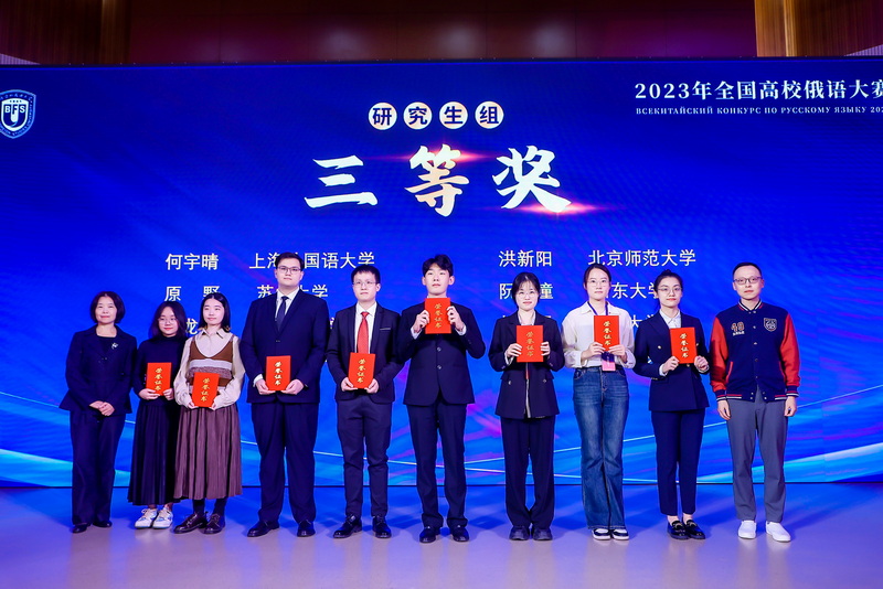 10月28-29日,由教育部国际合作与交流司主办,北京外国语大学承办的2023年全国高校俄语大赛在北京外国语大学圆满落幕。其中,我校俄文系2023级研究生洪新阳同学凭借扎实的俄语基础和出色的发挥顺利通过线上初赛进入线下复赛环节,并取得了三等奖(全国第十名)的成绩,将于2024年受留基委全额资助赴俄进修一年。