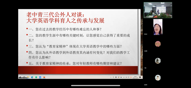 之后,公外党支部书记师曼主持了公外部老中青三代教师对谈。即将入职的倪奥华作为新教师代表,就“如何在教育家精神指引下,践行大学英语的学科育人功能”向退休教师代表提问;王焱华、杨凤珍、高秀琴、马磊、李彦铭等老师,分享了教学中难忘的人和事,畅谈了自己对教育家精神的理解和实践。刚刚获评我校“最受本科生欢迎的十佳教师”的李航作为中青年教师代表分享了自己在教学中与学生互动的幸福点滴,她说,教育就是要去感化、去撼动学生的心灵。公外部老中青三代教师的对话不仅是教学实践知识的传递,更体现了教育家精神的接力,展现了公外部教师无私奉献的精神、团结协作的风貌与优秀传统的发扬。